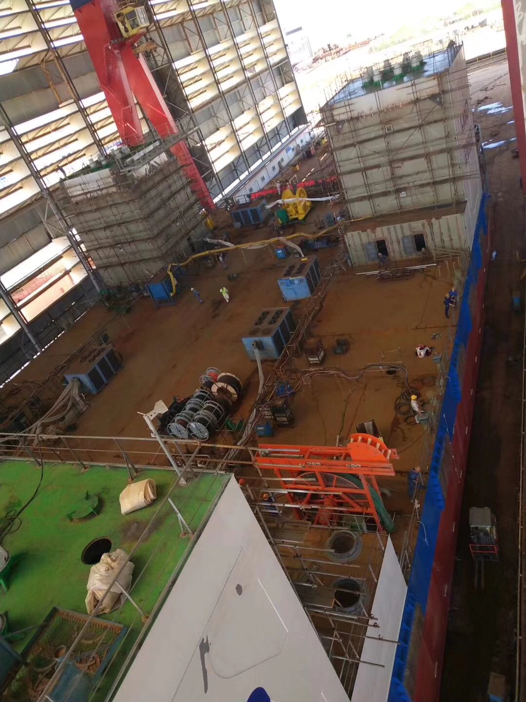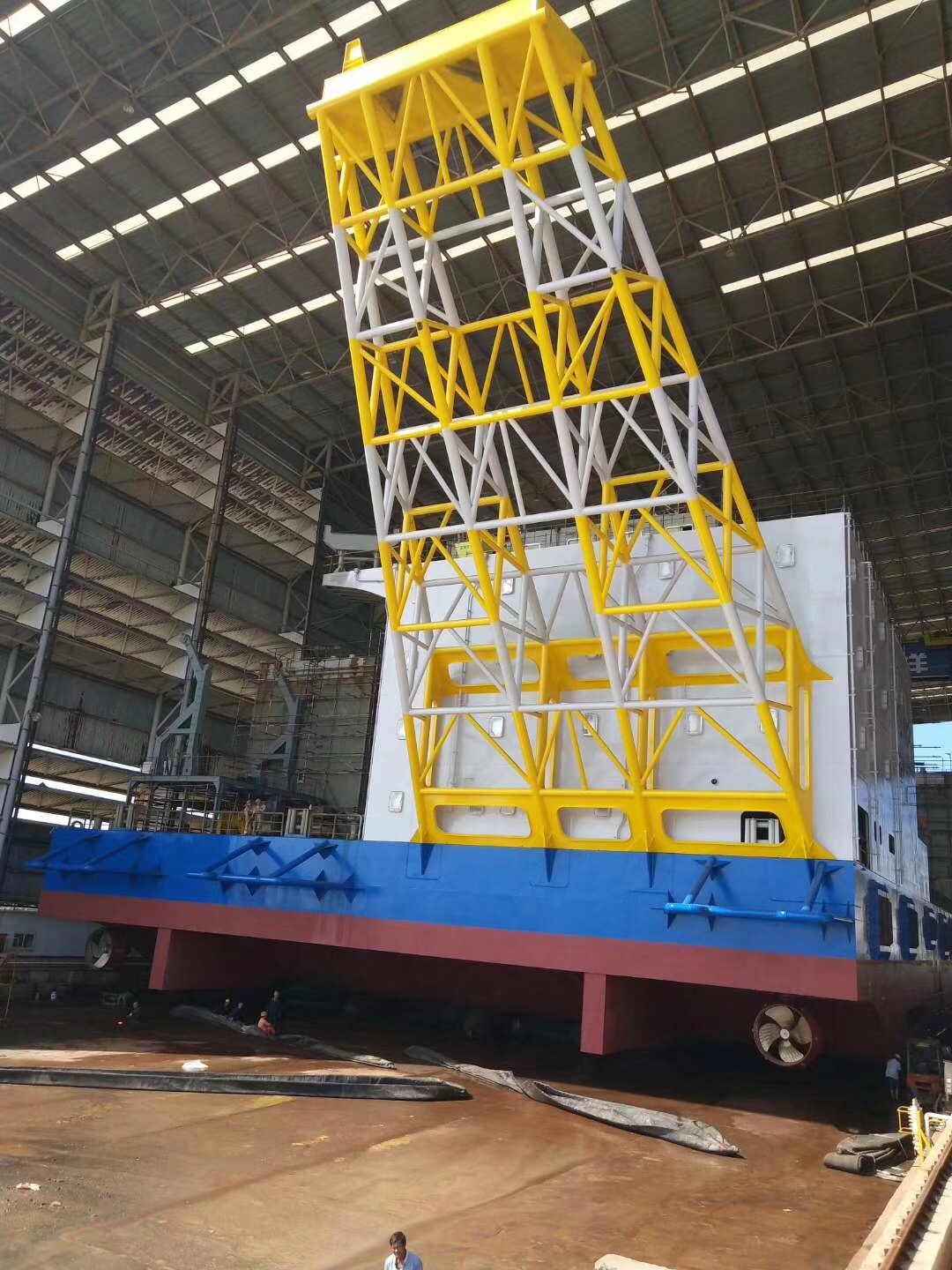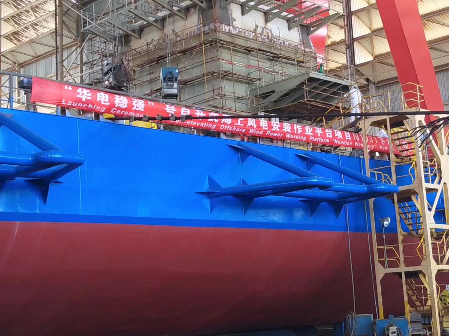 熱烈祝賀由南通豪通船務在潤邦海洋總包主船體搭載工程的“華電穩(wěn)強”號自升式海上風電安裝作業(yè)平臺于2018年8月28日中午順利下水!