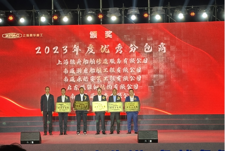 5月8日晚,振華啟東海工成立10周年職工歌詠比賽暨2024年“六比六創(chuàng)·三型一流杯”奪標勞動競賽啟動儀式在公司行政樓廣場隆重舉行。活動中,公司對2023年度“優(yōu)秀分包商”“優(yōu)秀項目部”“優(yōu)秀團隊”“優(yōu)秀干部”“優(yōu)秀員工”進行表彰。 南通豪通船務有限公司榮獲2023年度“優(yōu)秀分包商”稱號。